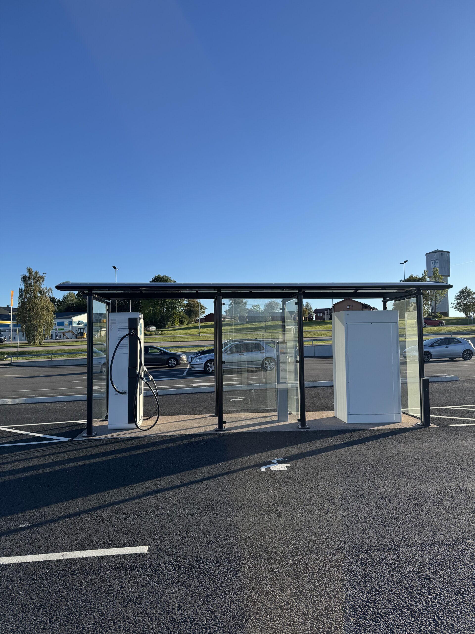 - Väderskydd över alla laddare, som såväl förbättrar arbetsmiljön som skyddar utrustning. Detta gör stationen extra väl anpassad för svenskt klimat.